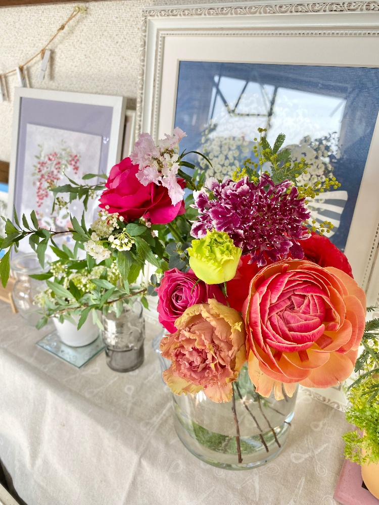 沢山のかわいい何種類ものお花を束ねたプロポーズブーケをお預かりしました。デザインは私にお任せということでお花を沢山詰め込んだ上からのぞいた時に目にしたような♡ブーケスタイルに仕上げさせていただきました。(●︎^-^●︎)